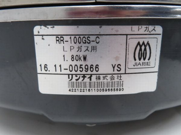 J237◆リンナイ 2016年◆ガス炊飯器 RR-100GS-C LPガス
