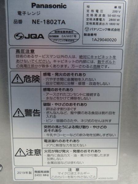 J245◆タニコー 2019年◆業務用電子レンジ NE-1802TA 単相200V