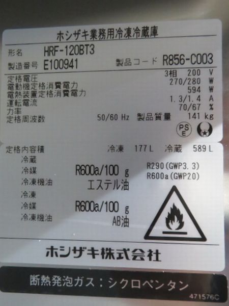 J265◆ホシザキ 2025年◆4ドア冷凍冷蔵庫 HRF-120BT3 3相200V