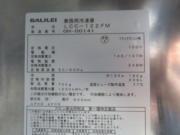 J277◆フクシマ 2020年◆冷凍コールドテーブル LCC-122FM 100V