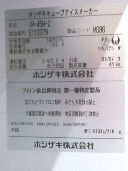 J287未使用◆ホシザキ 2025年◆製氷機 IM-45M-2