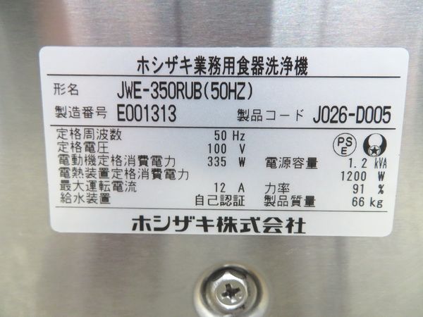 J289◆ホシザキ 2025年◆食器洗浄機 JWE-350RUB(50Hz)