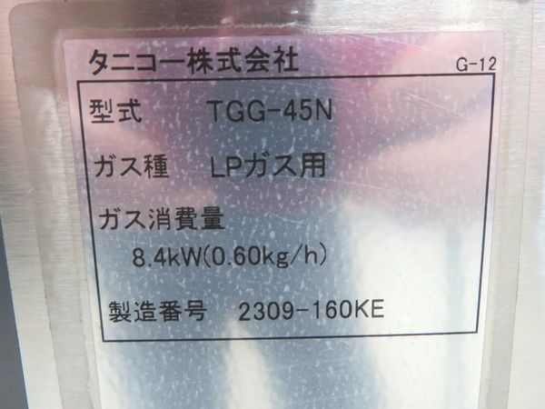 J293◆タニコー 2023年◆ガス式グリドル TGG-45N