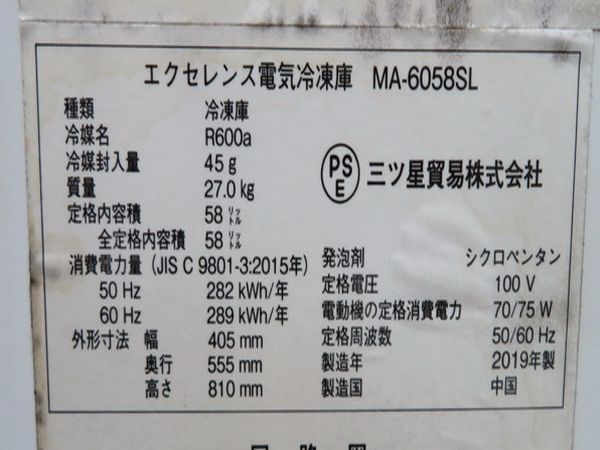 J331◆三ツ星 2019年◆冷凍ストッカー MA-6058SL 100V