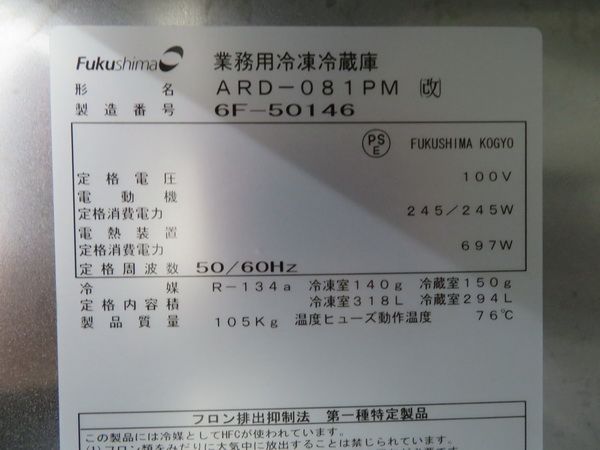 J396◆フクシマ 2016年◆2ドア冷凍冷蔵庫 ARD-081PM(改) 100V